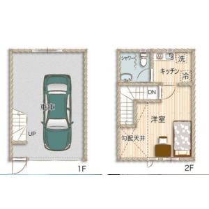:1階倉庫(ガレージ)・2階事務所(シャワールーム・エアコン付き・機械警備ALSOK 別貸し駐車場