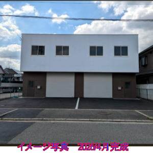 新築工事中 2026年3月完成予定 事務所付倉庫 1階倉庫12.58坪・2階事務所12.58坪 建物前面に駐車スペース有(2台) 天井高1階3m・2階2.4m